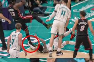 本场比赛中,三球倒地时手臂疑似拉到阿德巴约脚踝,导致后者退赛,赛后,主裁判扎巴被记者问到了当时裁判为什么没有吹罚及回放——