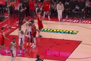 GIF-阿门故意与詹姆斯撞胸
