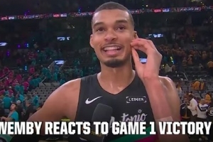文班亚马:我的意思是,你知道,作为我们的第一场主场比赛,压力是在我们这边的。但其实并没有什么压力。你知道我们一直在强调这点。我们只是在做我们在常规赛中一直做的事情。不要想太多。接下来是第二场比赛。谢谢。
