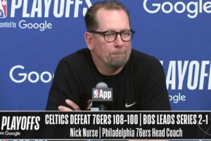 纳斯:听着,这是一轮充满竞争的系列赛。我们打得非常非常努力。我们犯了一些通常在这种比赛中不能犯的错误。博纳的第五次犯规可能本来是可以不吹的,而且我觉得塔图姆在那之前已经走步了。我们在防守端给了他们很大压力,特别是最后5分钟。我们在一些扑防上确实做得不够好,发生了一些边缘接触,但无论如何,我喜欢我们的竞争方式。如果想赢球,我们必须在篮板、干扰投篮和命中率上做得更好。