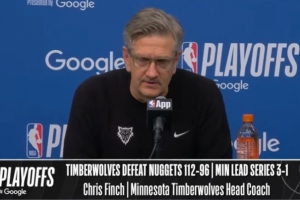体育资讯4月26日讯 NBA季后赛首轮G4,森林狼主场112-96击败掘金,大比分3-1夺得赛点。赛后克里斯·芬奇接受了媒体采访,以下为采访全文。