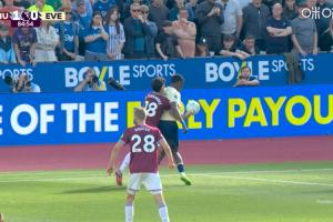 比赛第85分钟,0-1落后的埃弗顿将球做入西汉姆联禁区,蒂埃诺·巴里背身护球,西汉姆联中场马特乌斯·费尔南德斯直接用手将球拨出了底线,但主裁判阿特维尔并未吹罚点球,反而判罚了门球,西汉姆联获得球权。